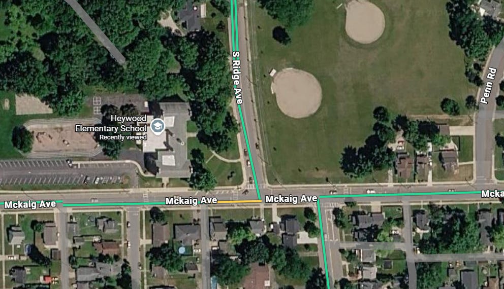 The City’s Service and Safety Director mentioned there were complicating factors involved in putting senior housing on that site. When pressed, one of those factors turned out to be the intersection of McKaig Avenue and Ridge Avenue. Apparently, reconfiguring that intersection has been on someone’s drawing board at City Hall for “five to ten years.” The intersection was also described as “poorly engineered.”